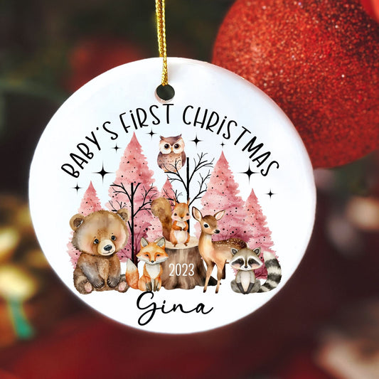 Personalized First Christmas Ornament, Woodland Baby's First Christmas Ornament, Forest Animals Nursery Decor,Custom 1st Christmas Ornament