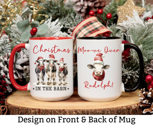 Christmas in the Barn, Coffee Mug, 15oz Mug, Country Christmas, Moo, Vintage Christmas, Gift for Her, Gift Him, Gift Farmer, Hot Chocolate