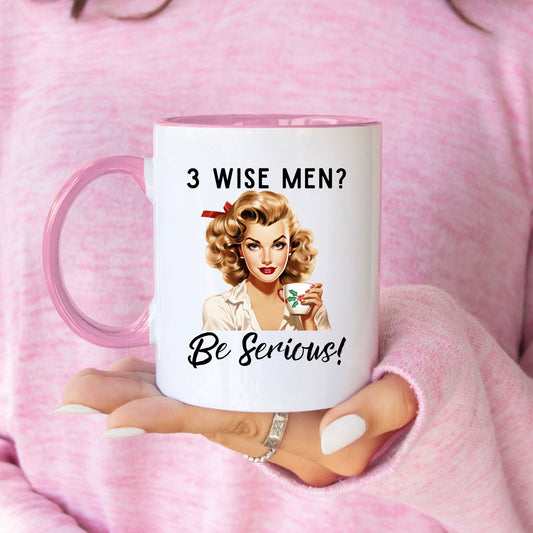 3 Wise Men Be Serious Coffee Mug, Christmas Party, 11 oz Coffee Mug, Funny Coffee Mug, Tea Mug, Pink Christmas, Birthday, Gift for Her